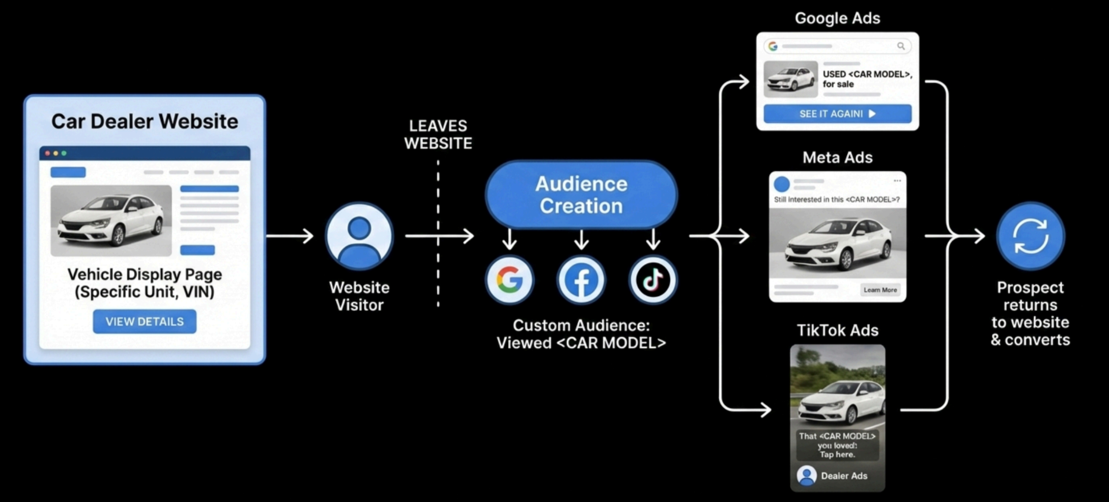This is the simple flow behind “the car following the shopper” after they leave your website.